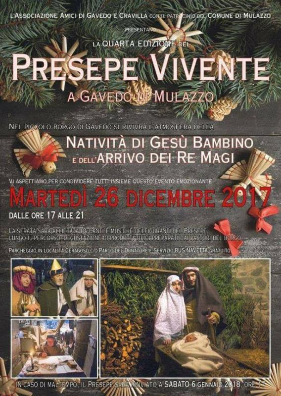 Martedì 26 Dicembre 2017 alle ore 17.00 si terrà la quarta edizione del Presepe Vivente a Gavedo di Mulazzo.