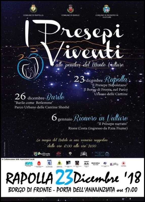 A Rapolla in provincia di Potenza si svolge nella giornata di Domenica 23 Dicembre 2018 alle ore 17.00 il Presepe Vivente.