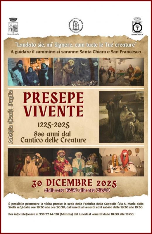 Vivi la magia del Presepe Vivente di Adelfia: un percorso emozionante tra scene storiche, tradizioni e spiritualità che prende vita nel cuore del paese.