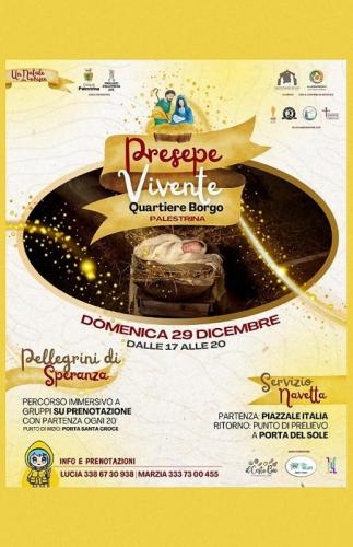 Domenica 29 Dicembre, a partire dalle ore 17.00, il quartiere Borgo di Palestrina si animerà con il presepe vivente itinerante tra le vie, i vicoli e le cantine del quartiere.