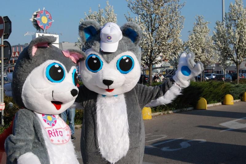 Per i più piccoli, domenica arrivano anche Favo e Rita, le simpatiche mascotte del centro, i personaggi con le sembianze di due cagnolini/husky che amano l’ambiente e lo rispettano, riciclano e recuperano i materiali, difendono la natura, ma rispettano anche le regole. Si sforzano di fare sport e di scegliere cibi sani; amano leggere.