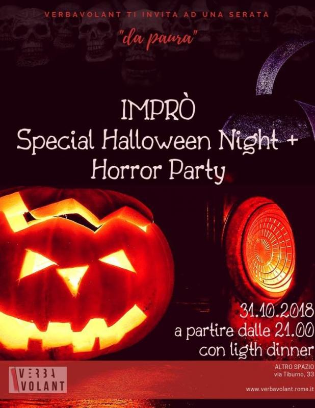 Per la notte di Halloween Verbavolant vi invita a una serata in cui poter vivere con divertimento tutti gli incubi possibili. E’ Imprò Special Halloween Night in cui maschere, cosplay, musica e improvvisazione teatrale si uniscono per un’unica lunga notte. Due squadre di improbabili mostri si affrontano nell’Imprò, il format nato in Italia e diventato ben presto l’originale marchio di fabbrica dell’improvvisazione Teatrale Italiana nel mondo. Uno spettacolo che vi farà morire dal ridere!