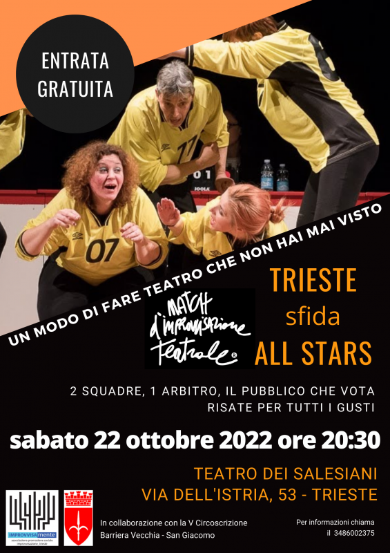 Di nuovo e finalmente a Trieste lo spettacolo più rappresentato al mondo! Gli attori delle squadre si cimenteranno con temi proposti direttamente dal pubblico all’ingresso e quindi del tutto ignoti. Non puoi perdere questo evento!