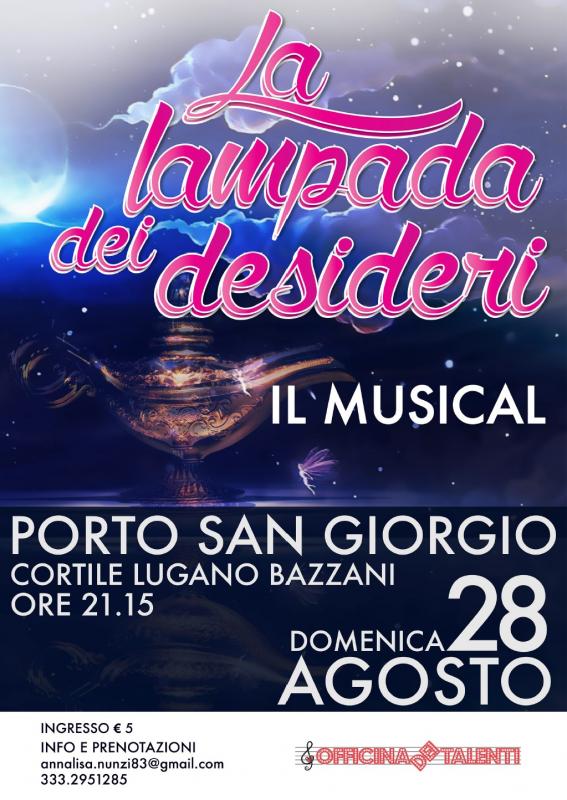 La replica di fine estate del Musical “La lampada dei desideri”: domenica 28 agosto 2016 sul palco del Cortile L. Bazzani a Porto San Giorgio