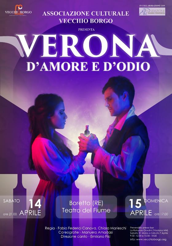 L'Associazione Culturale VecchioBorgo di Viadana (MN) è lieta di invitarvi al nuovissimo musical VERONA D'AMORE E D'ODIO, liberamente ispirato alla storia di Giulietta e Romeo. Due ore di musica e coreografie emozionanti per un cast davvero di altissimo livello.