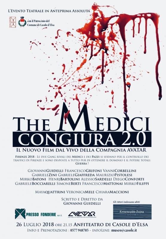 La Compagnia AVATAR (20 ATTORI), su testo e regia di Giovanni Guidelli (Rai e Mediaset), propone in Prima Assoluta THE MEDICI CONGIURA 2.0, una messinscena moderna della vicenda, una rilettura quindi attualizzata ai giorni nostri, con una famiglia Medici al centro dei traffici economici fiorentini e non solo, avversata dall’altra famiglia fiorentina dei Pazzi.