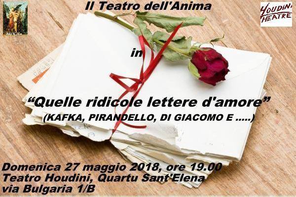 Spettacolo teatrale su "Lettere a Milena" (F. Kafka), epistolari Luigi Pirandello-Marta Abba e Salvatore di Giacomo-Elisa Avigliano, con musica, immagini e video. Teatro Houdini (Quartu Sant'Elena, via Bulgaria 1/B). Domenica 27 maggio 2018, alle ore 19.00.