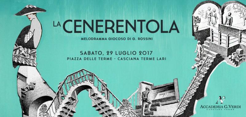 Sabato, 29 luglio 2017 alle ore 21:15, presso Piazza Garibaldi di Casciana Terme Lari, l’Accademia Giuseppe Verdi metterà in scena dopo 200 anni dalla prima rappresentazione "La Cenerentola" di Gioachino Rossini. La regia sarà affidata a Rocco Pugliese, regista che vanta collaborazioni con teatri di tutto il mondo il quale ci farà sognare con la favola che si ispira al racconto di C. Perrault e che celebra gli elementi del perdono e della virtù su uno sfondo tutt’altro che fiabesco a cavallo tra gli anni '20 e '30, proiettandoci nel mondo illusionista e infinito di Maurits Cornelis Escher.