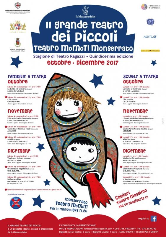 IL GRANDE TEATRO DEI PICCOLI • MONSERRATO è un progetto realizzato col contributo della Regione Autonoma della Sardegna, Assessorato della Pubblica Istruzione, Beni Culturali, Informazione, Spettacolo e Sport, della Fondazione di Sardegna, del Comune di Cagliari, assessorato alla Cultura, del Comune di Monserrato, Assessorato alla Cultura.