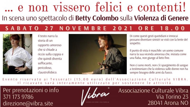 Sabato 27 novembre 2021 alle ore 18.00 presso il Micro Teatro dell’Associazione Culturale VIBRA di Arona, andrà in scena uno spettacolo di Betty Colombo sulla Violenza di Genere.