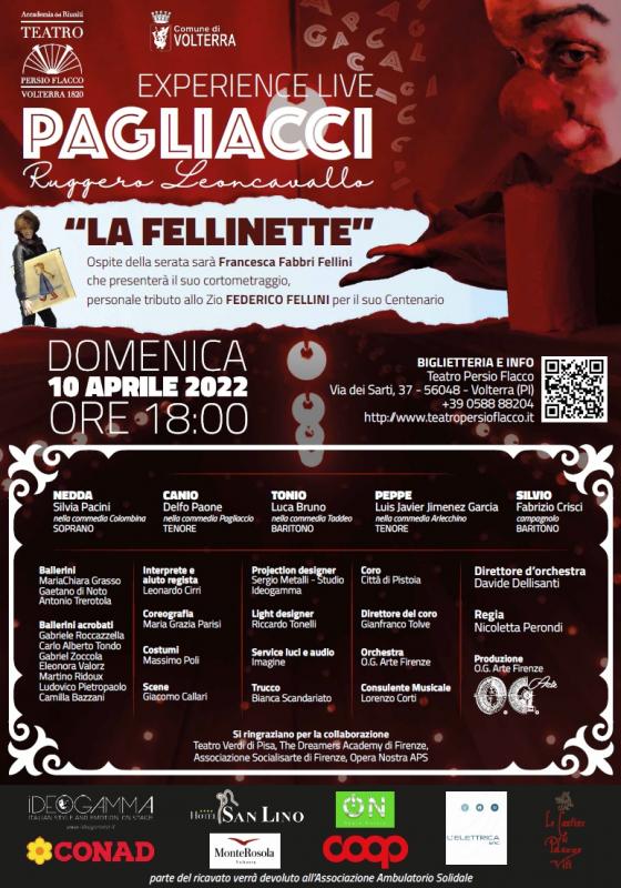“Sono felice di poter annunciare che Volterra, eletta dal presidente Giani prima città toscana della cultura 2022, celebra i 200 anni del suo teatro con un evento importante come questo – ha aggiunto la vicepresidente della Regione Toscana Stefania Saccardi – Perché l’opera “Pagliacci” è uno tra i più celebri melodrammi di tutta la storia della lirica italiana, europea e mondiale. Se si pensa che poi l’opera sarà introdotta dalla favola animata di Francesca Fabbri Fellini, nipote del maestro del cinema italiano – un altro richiamo internazionale quindi –, che ha lavorato sui disegni del regista, credo si possa dire che Volterra celebra l’arte a 360 gradi con un evento che riesce a esaltare teatro, cinema, musica, pittura e poesia in un unicum originale e accattivante degno di una capitale della cultura”.