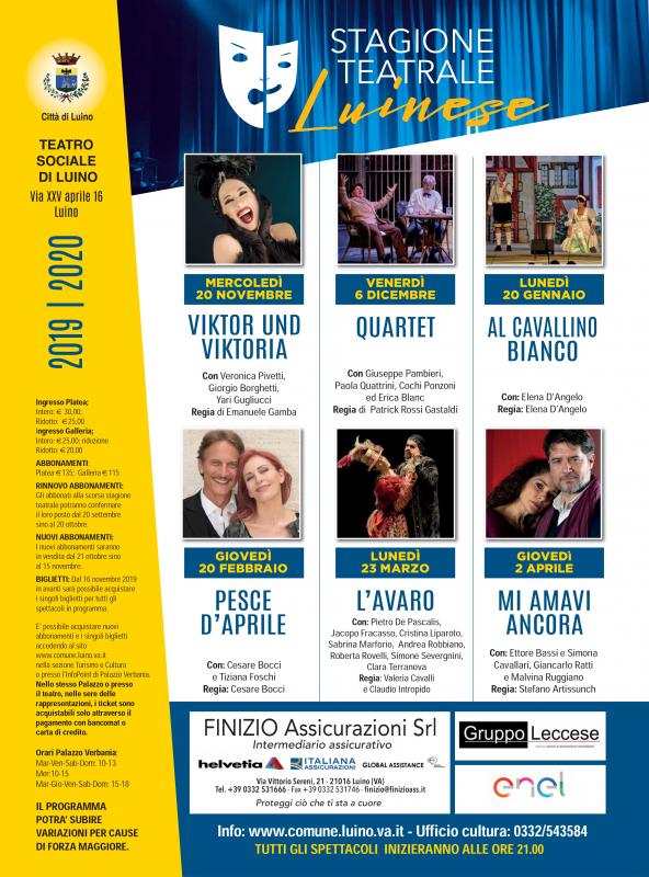 Si apre il 20 novembre 2019 la Stagione Teatrale di Luino presso il Teatro Sociale.