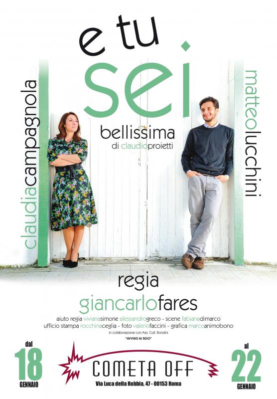 Torna in scena per il sesto anno E tu sei bellissima. Dal 18 al 22 gennaio al Teatro Cometa Off di Roma, Claudia Campagnola e Matteo Lucchini, diretti da Giancarlo Fares, danno vita alla commedia romantica più rappresentata di Claudio Proietti.