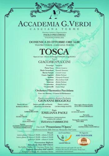 Il prossimo allestimento firmato Accademia Giuseppe Verdi, sarà la Tosca di Giacomo Puccini Domenica 23 ottobre presso il Teatro Verdi di Casciana Terme. Grazie al successo delle passate edizioni l'associazione ha deciso di “internazionalizzare” questa idea e coinvolgere artisti provenienti da più parti del mondo.