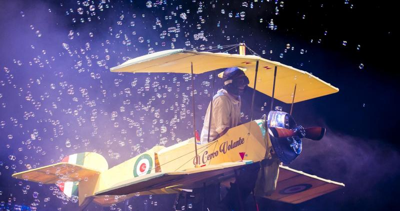 Grande appuntamento domenica 7 gennaio alle ore 16 al Teatro Arena del Sole di Roccabianca con il fantastico mondo delle bolle di sapone nello spettacolo “Controvento - storia di aria, nuvole e bolle di sapone” di Michele Cafaggi con le musiche originali di Marco Castelli. Negli anni scorsi più volte ospite del teatro di Roccabianca ed esibitosi recentemente al programma televisivo “Tú sí que vales”, dove ha riscosso uno strepitoso successo con una magica performance dedicata alle bolle di sapone con la quale ha saputo emozionare pubblico e giuria, Michele Cafaggi presenta all’Arena del Sole il nuovo spettacolo “Controvento” e torna a sperimentare attrezzi, materiali e tecniche per trovare nuove forme espressive attraverso l'utilizzo delle bolle di sapone. Con la comicità del gesto, la magia e le tecniche delle arti circensi si ripropone di stupire e divertire il pubblico in quel vortice di emozioni che è il teatro. Sul palco di “Controvento” appare un bellissimo biplano interamente costruito dal nostro aviatore in persona, il quale, dopo un breve discorso, partirà per la Grande Avventura! È il 15 luglio del 1913, tra lo scetticismo di alcuni e l’entusiasmo di molti altri, il nostro Eroe si alzerà presto in volo e ci porterà in mondi sconosciuti, meravigliosi e lontani, forse troppo lontani… Raffiche di vento, morbide e schiumose nuvole, gigantesche bolle di sapone ci accompagneranno in un viaggio al di là dei confini terrestri, in compagnia del nostro Eroe Aviatore. Un moderno Icaro, spaventato e coraggioso, spericolato e pasticcione, ma determinato a realizzare i suoi propositi, anche a costo di dover sacrificare le cose a lui più care. In “Controvento” la straordinaria abilità di Michele Cafaggi e la sua inconfondibile ironia danno vita a uno spettacolo di raffinato divertimento in cui magia, clowneria, bolle di sapone e arti circensi si fondono in un crescendo di stupore. Lo spettacolo è dedicato a tutti i sognatori, più o meno eroici, che non hanno mai lasciato nulla di intentato. Michele Cafaggi da diversi anni ha studiato per sviluppare teatralmente la tecnica delle bolle di sapone giganti. Ogni spettacolo nasce da una ricerca sulle tecniche, gli oggetti e le storie da raccontare. Spettacoli senza parole dove magia, clownerie, bolle di sapone e arti circensi si fondono per dare vita a spettacoli di raffinato divertimento adatto ad un pubblico di ogni età. Ha studiato in Italia e in Francia con Jango Edwards, Quelli di Grock, Philippe Gaulier, Marcel Marceau, Philippe Radice, presso L’Ecole Nazionale du cirque Fratellini, la Scuola di Arti Circensi della Sala Fontana e la Lega Italiana di Improvvisazione Teatrale. Michele Cafaggi ha ricevuto il Premio nazionale Franco Enriquez 2016 con la seguente motivazione: “ Il suo teatro e le sue bolle piene di poesia catturano gli occhi e il cuore di grandi e bambini, i suoi spettacoli sempre raffinati, estasianti, coinvolgenti, ricchi di clownerie, sono il frutto di una ricerca profonda e di una raggiunta maturità mimico-attoriale. La sua arte è spesso a disposizione di eventi benefici a favore dei bambini, ricordiamo la sua opera presso la Fondazione Theodora Onlus, per la quale veste presso i reparti pediatrici i panni del dott. Sogno, un grande esempio di impegno sociale e civile”.