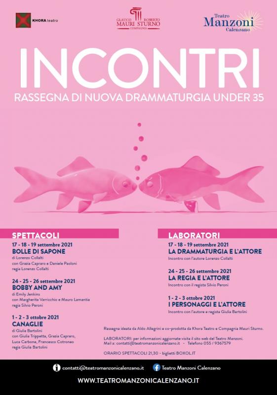 In attesa che prenda il via la nuova stagione teatrale, il Teatro Manzoni di Calenzano inizia la sua attività teatrale con una rassegna di tre spettacoli dedicati alla nuova drammaturgia, scritti e interpretati da attori under 35: un teatro rivolto ad un pubblico giovane, ma non solo, in cui viene dato ampio spazio a temi e linguaggi innovativi, vicini alle nuove generazioni.