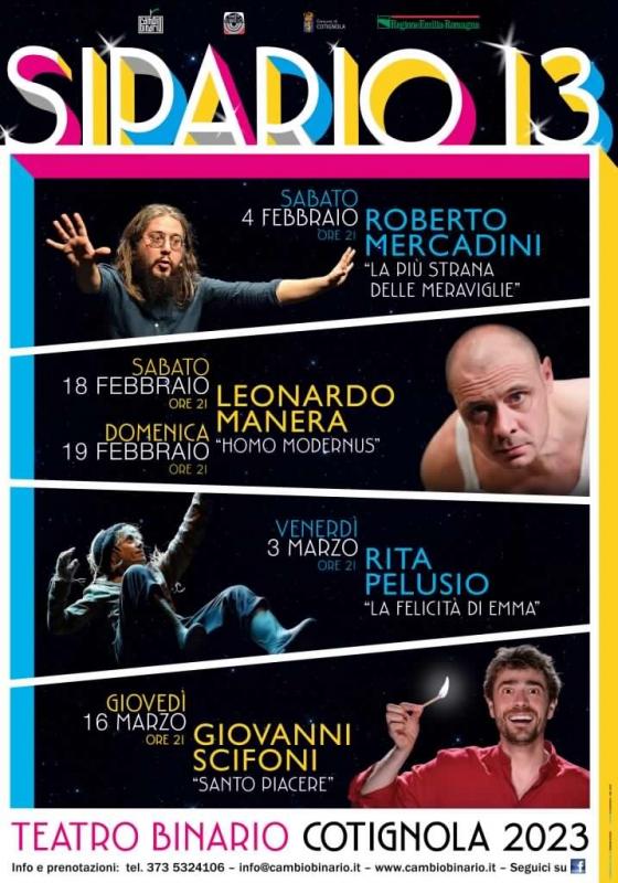Il comico Leonardo Manera con il suo “Homo Mondernus” è il protagonista del weekend del 18 e 19 febbraio. Interrogandosi sugli elementi che danno senso alla vita, concludendo con un messaggio di speranza e senza mai rinunciare alla sua tipica verve comica, l’attore offre al pubblico uno spettacolo che unisce il sorriso a una concreta considerazione sul nostro vivere quotidiano. Istantanee di un mondo sempre più tecnologico, dove i rapporti si fanno rarefatti, ma in cui è possibile cogliere spunti di comicità.