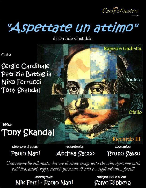 Ultimo spettacolo della rassegna previsto per venerdì 12 e sabato 13 aprile alle ore 20,50: sul palco la compagnia Campotheatro con "Aspettate un attimo" di Davide Gastaldo. Regia di Tony Skandal.