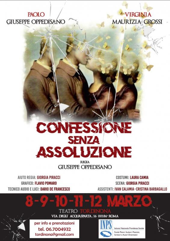 Al Teatro Tordinona di Roma dall'8 al 12 marzo sarà in scena “Confessione senza assoluzione” di Giuseppe Oppesidano. In scena lo stesso regista con Maurizia Grossi. Oppedisano tesse una drammaturgia complessa che prende spunto dall’attualità. All’interno della narrazione si sviluppano e si intrecciano conflitti e difficoltà nella comunicazione, tra momenti dolorosi, ironici e ferite profonde da guarire.