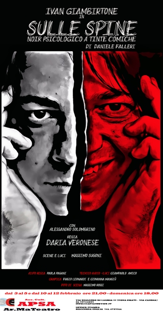 Arriva al Teatro Ar.Ma di Roma la regia di Daria Veronese che ad ottobre ha dato vita a questo nuovo spazio culturale a due passi dal Vaticano. Dal 3 al 12 febbraio, solo dal venerdì alla domenica, è in scena Sulle Spine il testo di Daniele Falleri che vede in scena Ivan Giambirtone e Alessandro Solombrino.