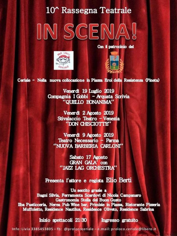 Nel corso dello spettacolo l’attore Elio Berti, insieme alle attrici Alessia Mela e Nicole Vignola, traccerà un breve ritratto artistico delle Compagnie teatrali che si sono esibite sul nostro palcoscenico nella stagione 2019. Verrà anche effettuata la premiazione “differita” dei vincitori della 10^ Estemporanea di Pittura “Onda d’Arte”, organizzata dalla Pro Loco.