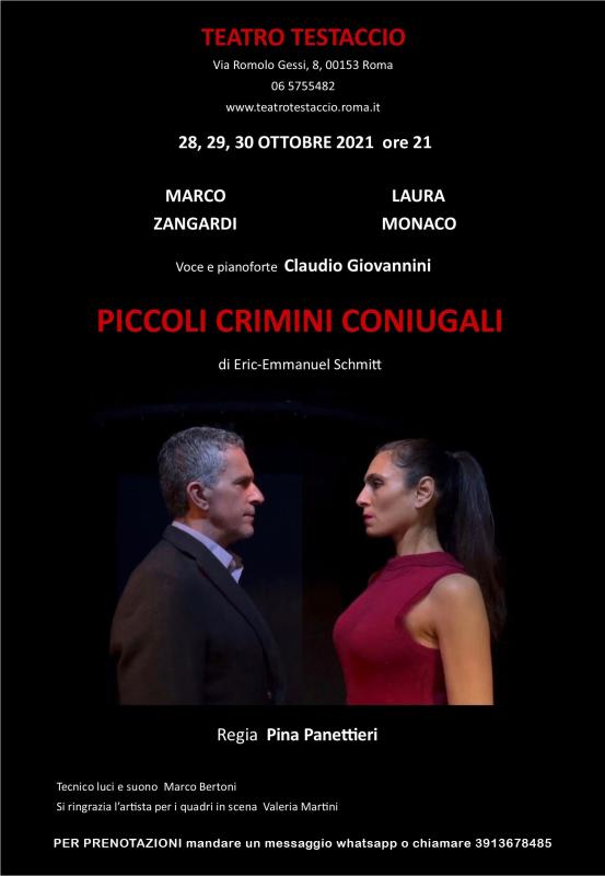 Dal 18 al 30 ottobre 2021 al Teatro Testaccio andrà in scena lo spettacolo disarmante PICCOLI CRIMINI CONIUGALI di E.E. Schmitt per la regia di Pina Panettieri.
