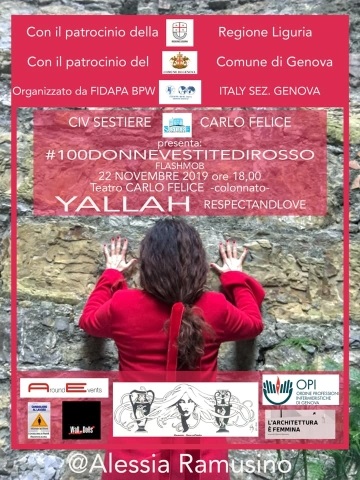 Si terrà presso il Teatro Carlo Felice di Genova il prossimo 22 novembre la nuova tappa di Yallah, il progetto contro i crimini sulle donne, partito da una canzone e che ha dato vita dal 2017 ad oggi ad una serie di flashmob in tutta Italia, contraddistinto sui social dall’hashtag #100donnevestitedirosso.