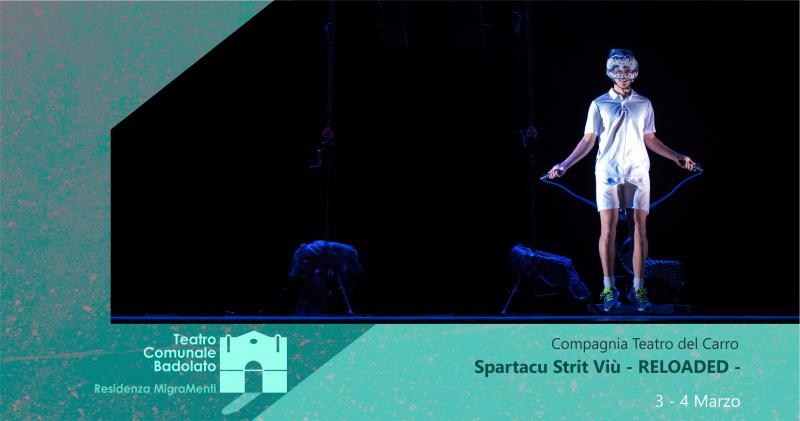 Dopo il grande successo del debutto dello scorso fine settimana al Teatro Ghirelli di Salerno, appuntamento della settima edizione di MutaVerso a cura dell’associazione Ablativo, anche al Teatro Comunale di Badolato andrà in scena “Spartacu Strit Viù” in versione “reloaded” con due recite, venerdì 3 e sabato 4 marzo. Definito da Alessandro Toppi su Repubblica «una delle visioni più potenti che si possa incontrare di recente qui a Sud», Spartacu strit viù - Reloaded è una ri-scrittura scenica aggiornata, con un nuovo montaggio, del fortunato monologo scritto da Francesco Gallelli insieme a Luca Maria Michienzi, che ne firma anche la regia. Prodotto dalla compagnia Teatro del Carro Pino Michienzi, con protagonista lo stesso Gallelli, Spartacu si intreccia alla vera vita e alla lotta del politico calabrese Franco Nisticò che, dopo essersi battuto con ogni mezzo per il miglioramento e l’ammodernamento della 106, perde la vita al termine di un ultimo comizio a Villa San Giovanni nel 2009. Con costumi e scene di AnnaMaria De Luca, “Spartacu” parte proprio dalla strada e dalle storie universali che la attraversano, dando loro voce: sono le storie di giovani e anziani, costretti a fare i conti tutti i giorni con quella maledetta strada, pendolari o abitanti dei paesi attraversati dall’importante arteria. È la storia del diritto a una strada sicura, che al contrario continua a mietere decine di vittime ogni anno di fronte al silenzio delle istituzioni preposte.