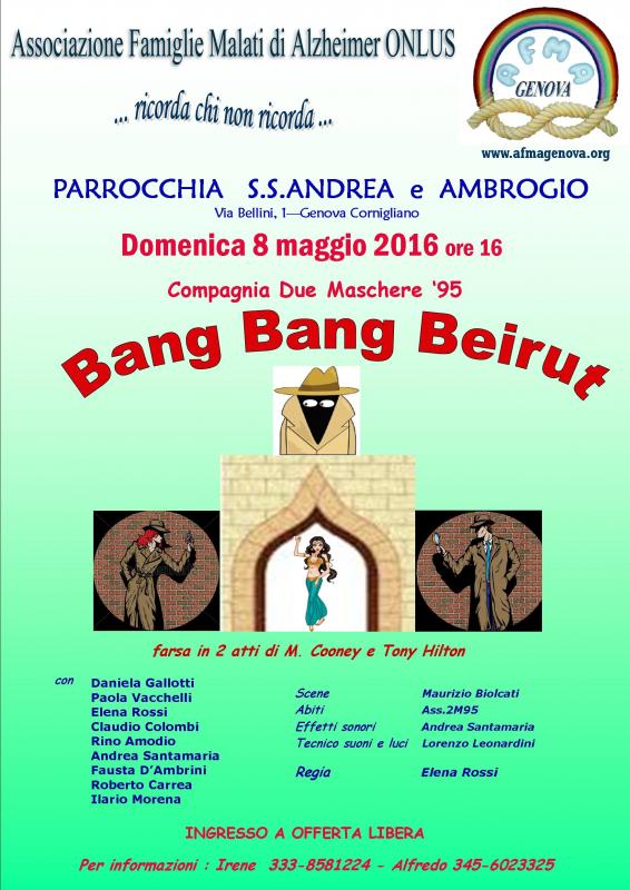 a Cornigliano Ligure, in via Bellini 1, la compagnia Teatrale "Due maschere '95" si esibirà in "Bang Bang Beirut"