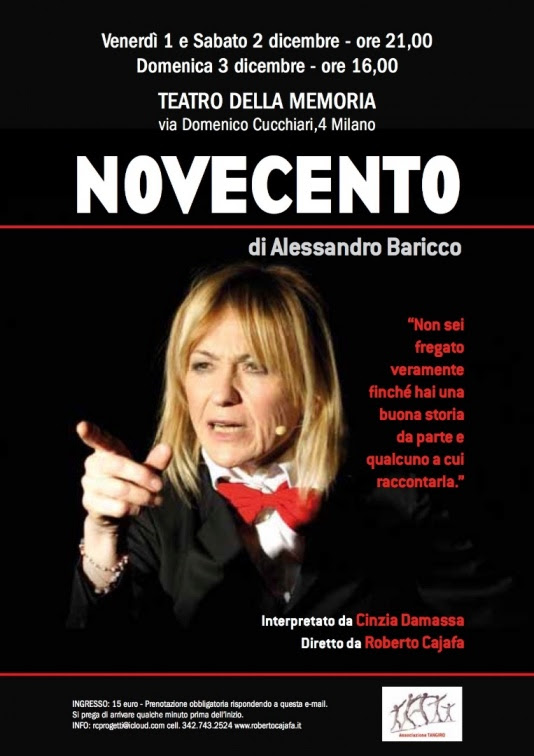 1-2-3 Dicembre - "NOVECENTO" di Baricco al Teatro della Memoria (Mi)