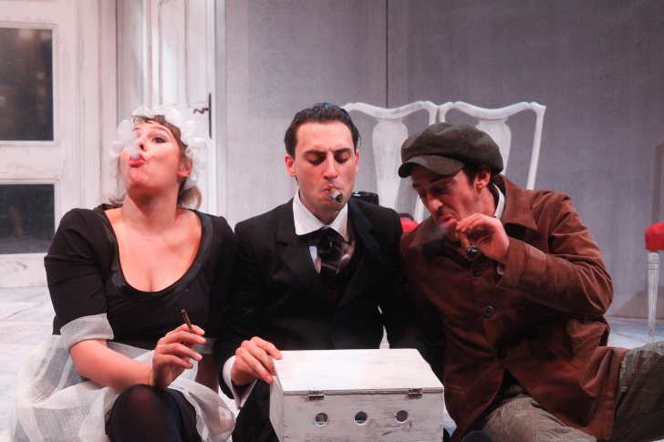 Nella messa in scena rimane l’ambientazione newyorkese, negli anni Trenta, e tutto accade nell’atrio della casa dei signori Myshkow. Oltre all’amico di Myshkow, transitano in questo luogo altri personaggi: due domestici e una persona che viene da fuori, un macellaio. Questo trio eccentrico, dichiarato omaggio ai servi goldoniani, ama la vita, è pieno di allegria e fa da contrappunto ai personaggi principali della storia, mettendo in luce, per contrasto, la triste storia del signore e della signora Myshkow, il loro rapporto vuoto, senza intensità e privo di senso.