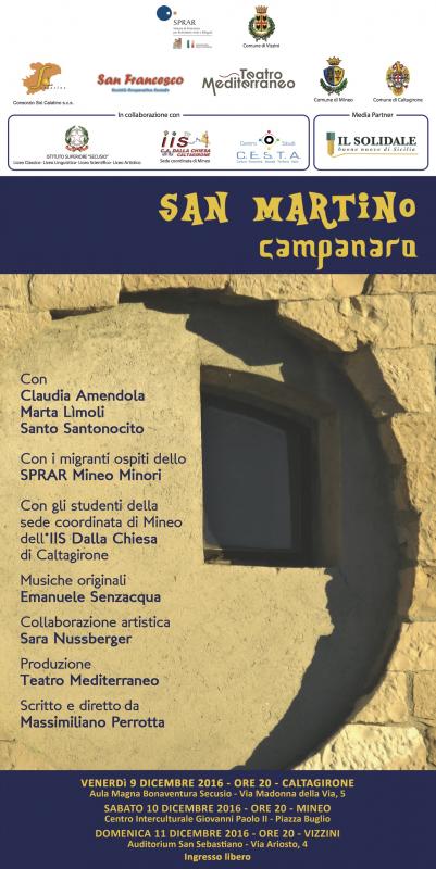 Debutterà venerdì 9 dicembre 2016 alle 20 nell'Aula Magna “Bonaventura Secusio” di Caltagirone, con repliche sabato 10 al Centro Interculturale “Giovanni Paolo II” di Mineo e domenica 11 all'Auditorium “San Sebastiano” di Vizzini, lo spettacolo “San Martino campanaro” scritto e diretto da Massimiliano Perrotta.