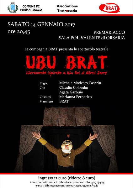 In scena sabato 14 gennaio con inizio alle ore 20.45 l’Associazione “Brat” di San Giorgio di Nogaro, con lo spettacolo dal titolo “Ubu Brat”.