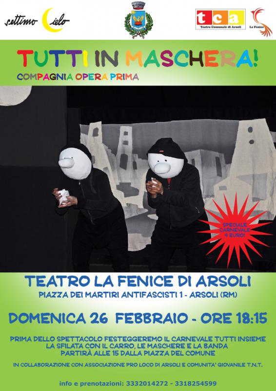 Domenica 26 febbraio, ore 18,15, in occasione del Carnevale, la Compagnia Opera Prima sarà in scena con Tutti in maschera... arriva carnevale.