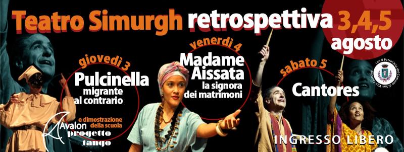 Il Teatro Simurgh presenta a San Vito Chietino – nella splendida cornice del Teatro due pini e con il patrocinio del Comune di San Vito Chietino – tre spettacoli simbolo del suo nutrito repertorio, per offrire al pubblico una tre giorni di incontro teatrale dove il comico ed il tragico, il passato e il presente, il quotidiano e il sacro si fondono aldilà di ogni definizione formale per rivelare l’essenza della tradizione popolare.