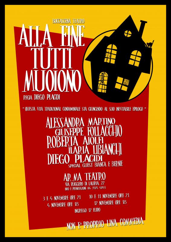 Dopo Giulio Cesare Canone Inverso, per altre due settimane il Teatro Ar.Ma ospita un testo di Diego Placidi. Dal al 12 novembre è in scena Alla fine tutti muoiono, una commedia nera, grottesca, dalle atmosfere cupe e scure che vede in scena lo stesso autore con Alessandra Martino, Giuseppe Follacchio,