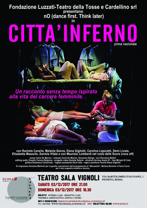 Città/inferno è un musical di dolori e abbandoni, dei vivi fuori invocati come i morti, delle superstizioni, delle canzoni passionali, dell’Italia del nord e del sud, passando per il centro. Il linguaggio e la poetica sono volti alla fusione della scrittura scenica in improvvisazione insieme alla danza, eseguita da attrici che indagano la loro espressività fisica e vocale, inserendola sempre in un contesto drammaturgico complesso e ricco di spunti.