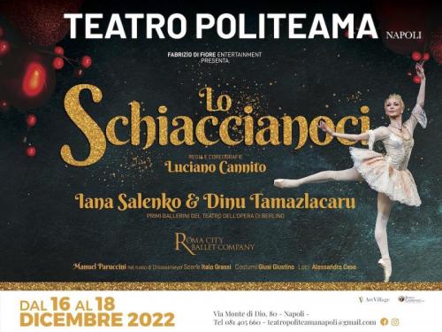 Al teatro Politeama di Napoli, in Via Monte di Dio 80, da venerdì 16 a domenica 18 dicembre 2022, sarà in scena il Roma City Ballet Company con “Lo Schiaccianoci”, balletto classico su musiche di P. I. Tchiajkovskij e con la regia e coreografia di Luciano Cannito.