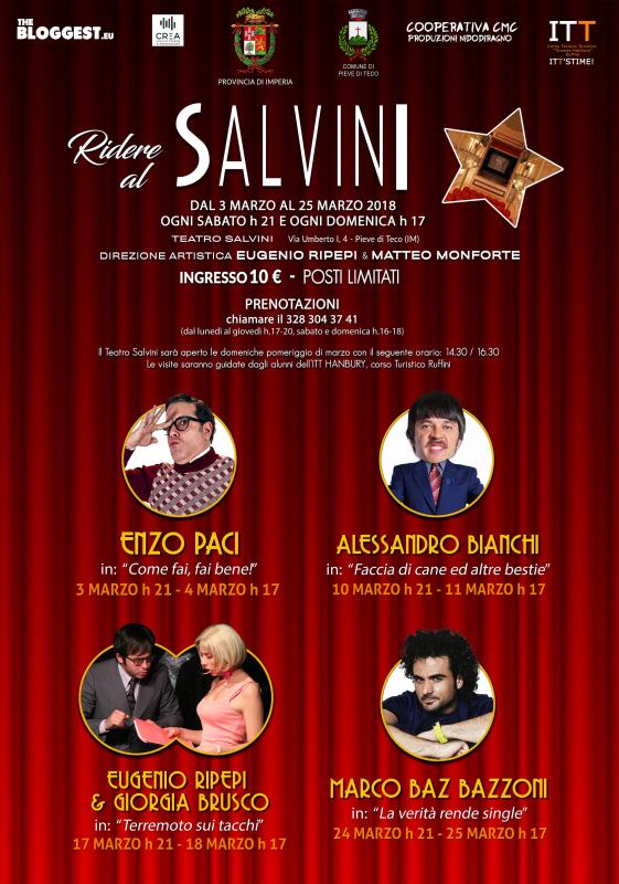 Un marzo tutto da ridere al Teatro Salvini di Pieve di Teco, il teatro più piccolo d'Europa, dove approderanno alcuni tra i più importanti comici del panorama televisivo nazionale, per la rassegna "Ridere al Salvini”.