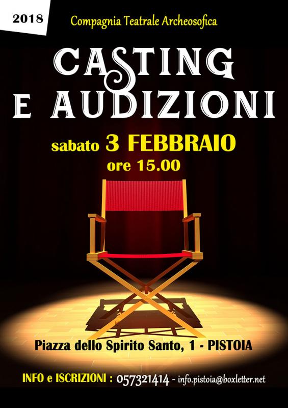 Sabato 3 febbraio alle ore 15.00 inizierà la sessione di Audizioni e Casting per i nuovi spettacoli della Compagnia Teatrale Archeosofica in programma nel 2018.