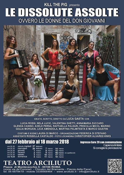 Dopo il grande successo ottenuto lo scorso ottobre“Le Dissolute Assolte” ritornano a Roma presso l’evocativo e storico spazio del TEATRO ARCILIUTO nella NUOVA INTEGRALE VERSIONE e con nuovi personaggi.