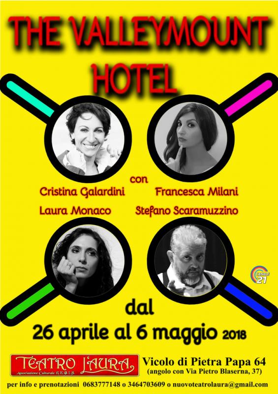 Il Teatro L’Aura si tinge di giallo! Dal 26 aprile al 6 maggio 2018 THE VALLEYMOUNT HOTEL con Cristina Galardini, Francesca Milani, Laura Monaco e Stefano Scaramuzzino.