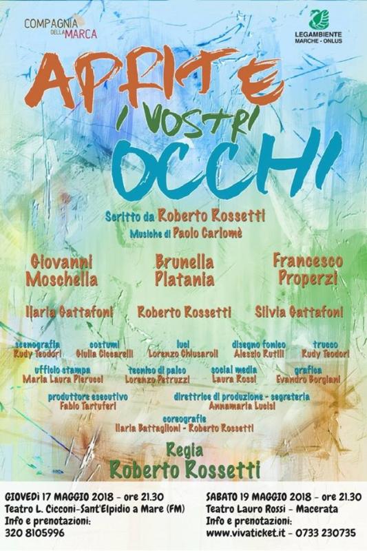 Si intitola "Aprite i vostri occhi" la nuova produzione della Compagnia della Marca, in anteprima nazionale al Teatro Cicconi di Sant'Elpidio a Mare giovedì 17 maggio e al Teatro Lauro Rossi di Macerata sabato 19 maggio.