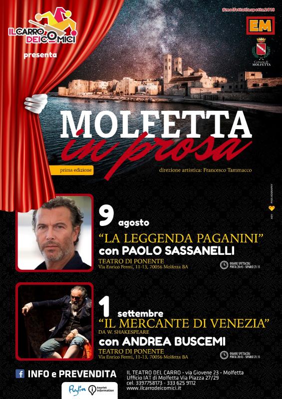 “Molfetta in Prosa” rientra nel cartellone di Eventi Molfetta dell’assessorato alla Cultura e Turismo del Comune di Molfetta e vuole portare i grandi nomi del panorama teatrale nazionale in città.