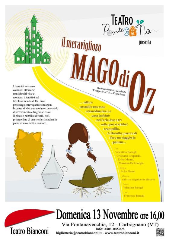 “...La moderna educazione include l’insegnamento morale, per cui il bambino moderno cerca nei suoi racconti straordinari soltanto lo svago e fa con piacere ameno di tutti gli episodi sgradevoli. Con questo pensiero ben presente in mente, ho scritto la storia del Meraviglioso Mago di Oz, solo con l’intento di far piacere ai bambini di oggi. Esso aspira ad essere una fiaba modernizzata nella quale sono stati conservati la meraviglia e la gioia e sono stati eliminati angosce ed incubi”. Così l’autore descrive la genesi dello spettacolo durante il quale i bambini verranno coinvolti, attraverso musiche dal vivo e interazione con loro, nel coinvolgente mondo di Oz con i suoi stravaganti personaggi che accompagneranno il pubblico dei più piccoli al centro di una storia straordinaria piena di delicatezza e candore, ma anche di semplicità e concretezza.