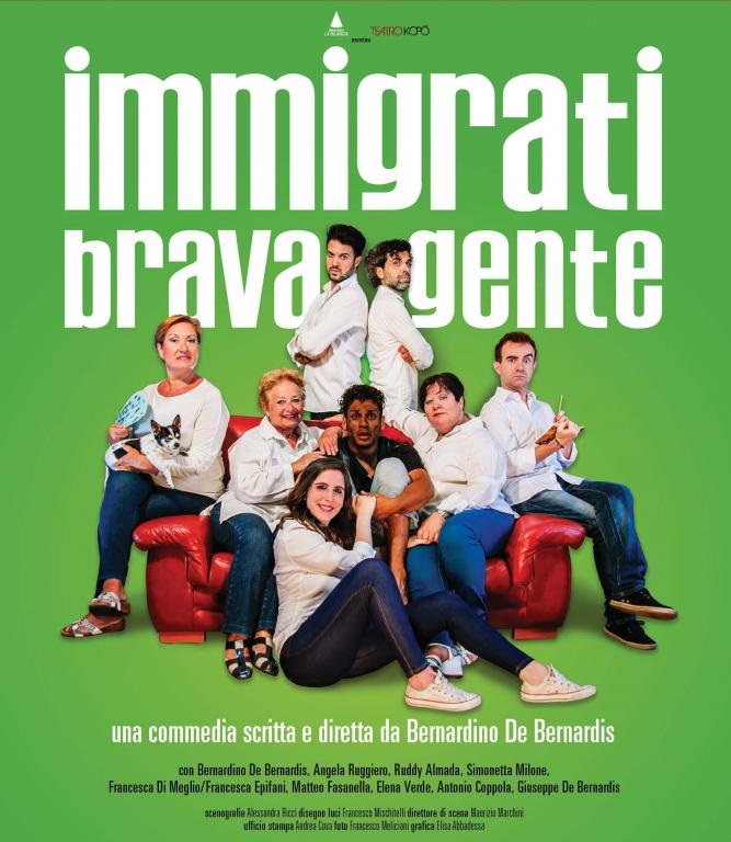 Torna in scena, dopo il successo al Teatro De' Servi, l'attualissimo testo di Bernardino De Bernardis, Immigrati Brava Gente. Sul palco insieme all'autore e regista anche Angela Ruggiero, Ruddy Almada, Simonetta Milone, Francesca Di Meglio, Matteo Fasanella, Elena Verde, Antonio Coppola, Voce Annuncio: Salvo Miraglia. Lo spettacolo sarà in scena dal 28 febbraio al 10 marzo al Teatro Marconi.