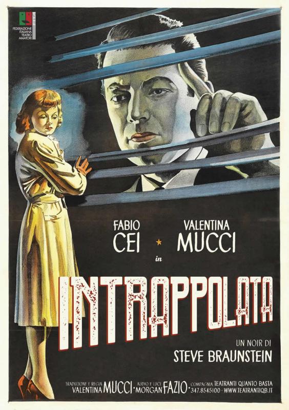"Intrappolata" (The Tangled Skirt) è una suggestiva pièce scritta da Steve Braunstein nel 2013. Un omaggio ai film noir americani degli anni ’40 e ’50. In Italia è una novità assoluta, la traduzione è stata curata dalla regista.