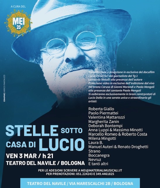 Per il compleanno degli 80 anni di Lucio Dalla, il 3 marzo al Teatro del Navile di Bologna, si terrà Stelle sotto la casa di Lucio, a cura del MEI25 di Faenza, che ha aperto la sua ultima edizione dedicandola proprio a Lucio