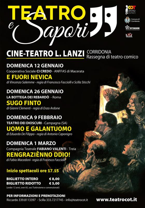 Domenica 12 Gennaio, al cine-teatro Lanzi di Corridonia, prende il via “Teatro e Sapori”, una rassegna di teatro comico con quattro messe in scena all’insegna del divertimento di qualità.
