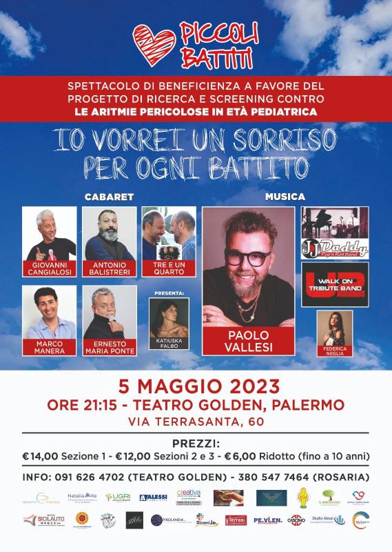 L’appuntamento è per il 5 maggio alle 21 a Palermo al Teatro Golden in via Terrasanta 60 con “Io vorrei un sorriso per ogni battito”.